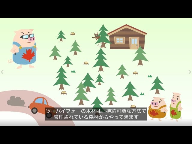環境に優しい2×4住宅の木材は、二酸化炭素を吸収して酸素を出すことから「第二の森」と言われています。さらに製造過程で生じる二酸化炭素量は鉄筋コンクリート造の約半分。地球に優しい住宅です。